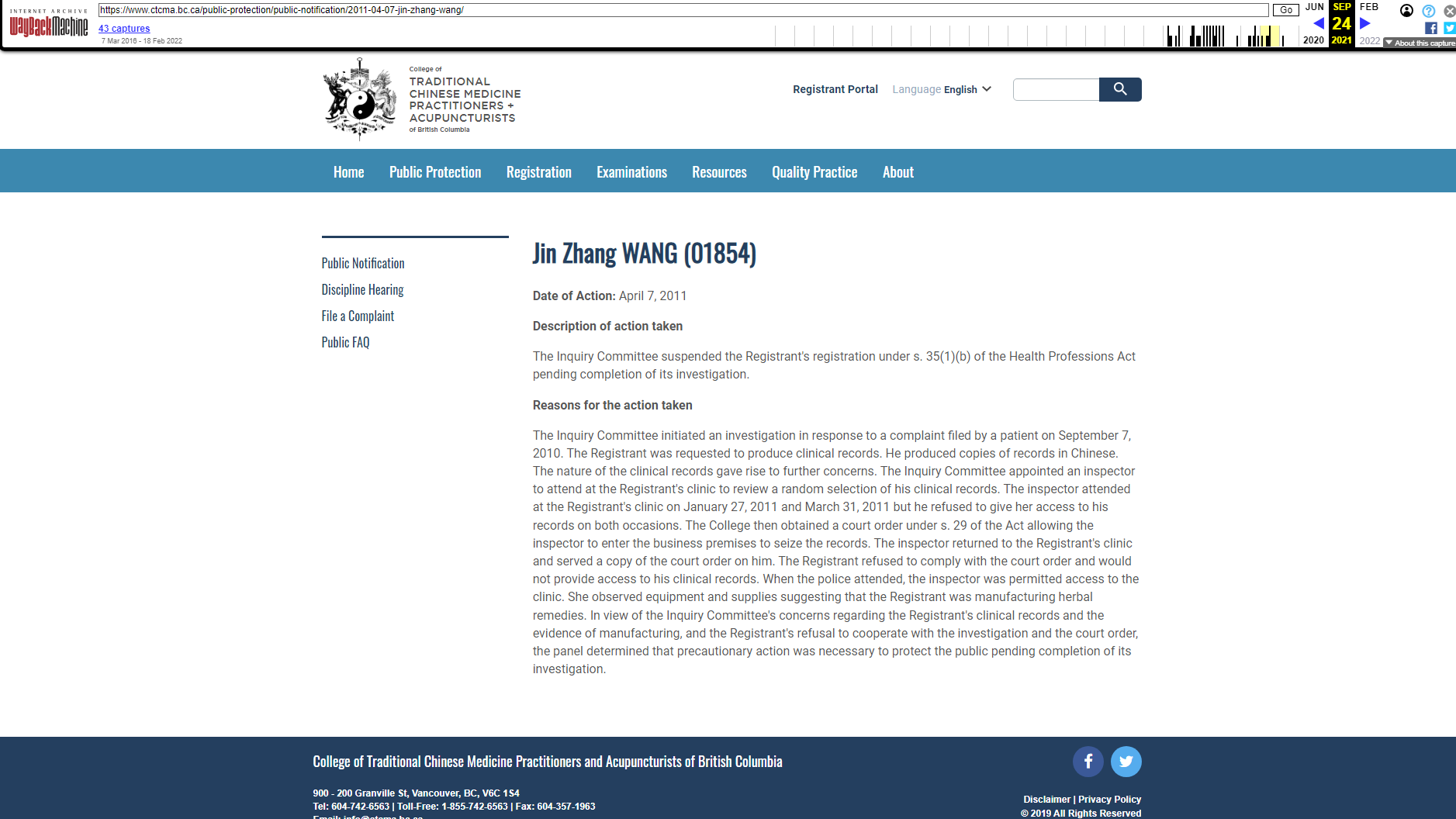 CTCMA illustrated this case on their website with misleading information from April 2011 - September 2021 as shown here.
